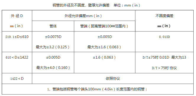 1、 如果訂貨合同規(guī)定的壁厚負(fù)偏差比本表給出的對(duì)應(yīng)數(shù)值小,則壁厚正偏差應(yīng)增加一些數(shù)值,以保證相應(yīng)的偏差范圍; 2、 壁厚正偏差不適用于焊縫區(qū)域; |