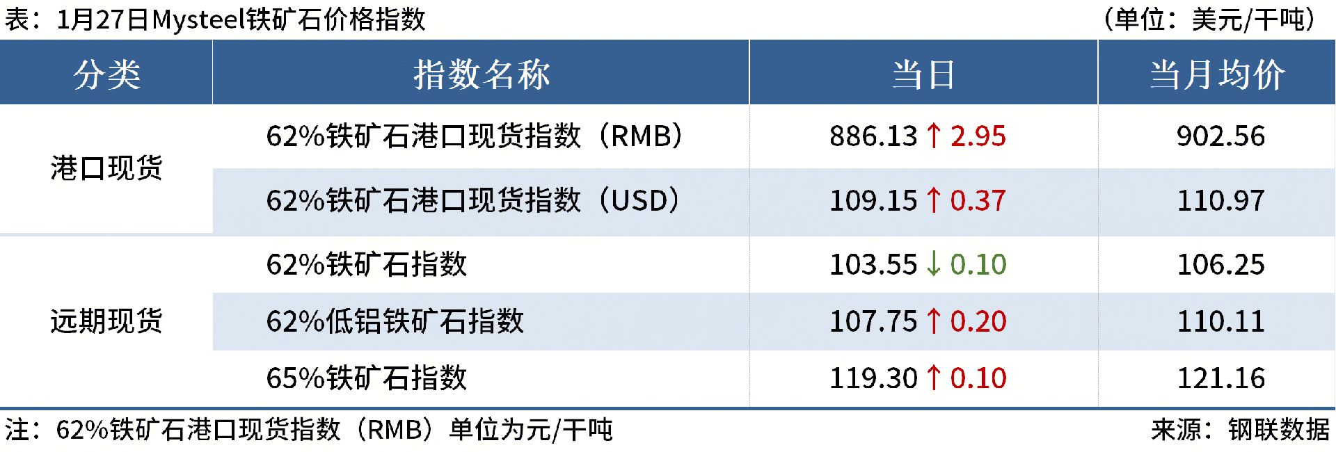 ◎1月27日,全國(guó)主港鐵礦石成交80.95萬(wàn)噸,環(huán)比減23.2%;237家主流貿(mào)易商建筑鋼材成交6.63萬(wàn)噸,環(huán)比減12.8%。